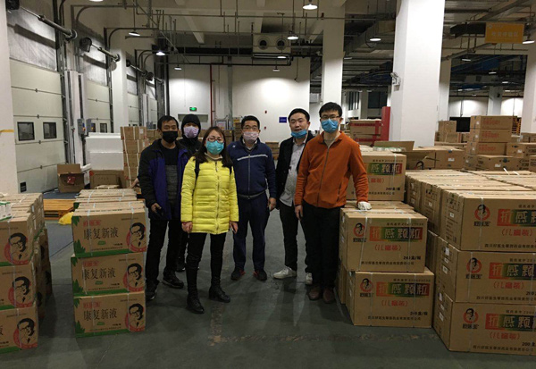 2020年2月8日下午,在得知大卡車還有2個小時就要下高速,江西商務經理馮萍和一起幫忙的家人,康復新事業部省區經理勒系儀,抗感事業部江西省區經理許昊等早早地守候在高速公路出口。在得知情況后,康復新事業部大區總監張小琦,也毫不猶豫放棄和家人團圓過節,迅速趕了過來幫忙。
